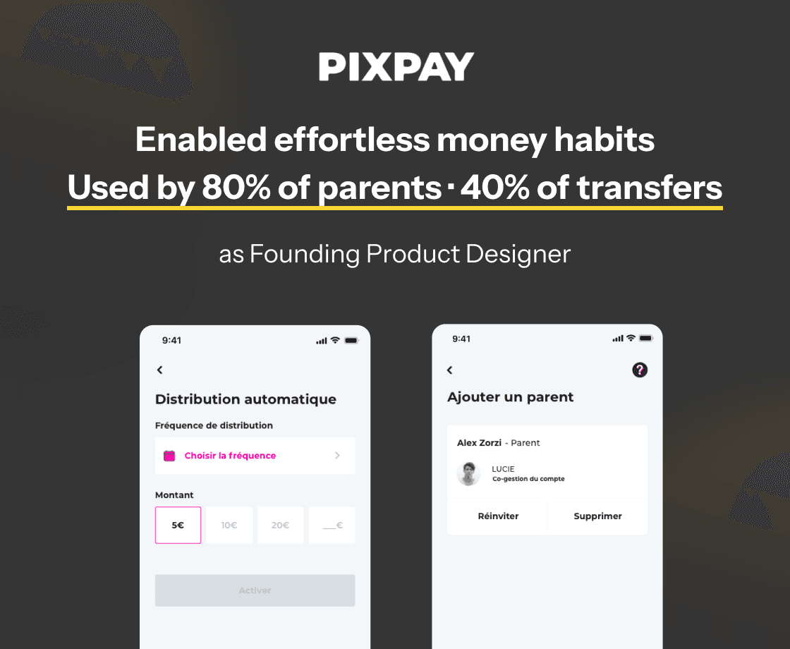 Joined Pixpay as founding Product Designer, shaping the mobile experience for teens and parents in a high-growth fintech environment.