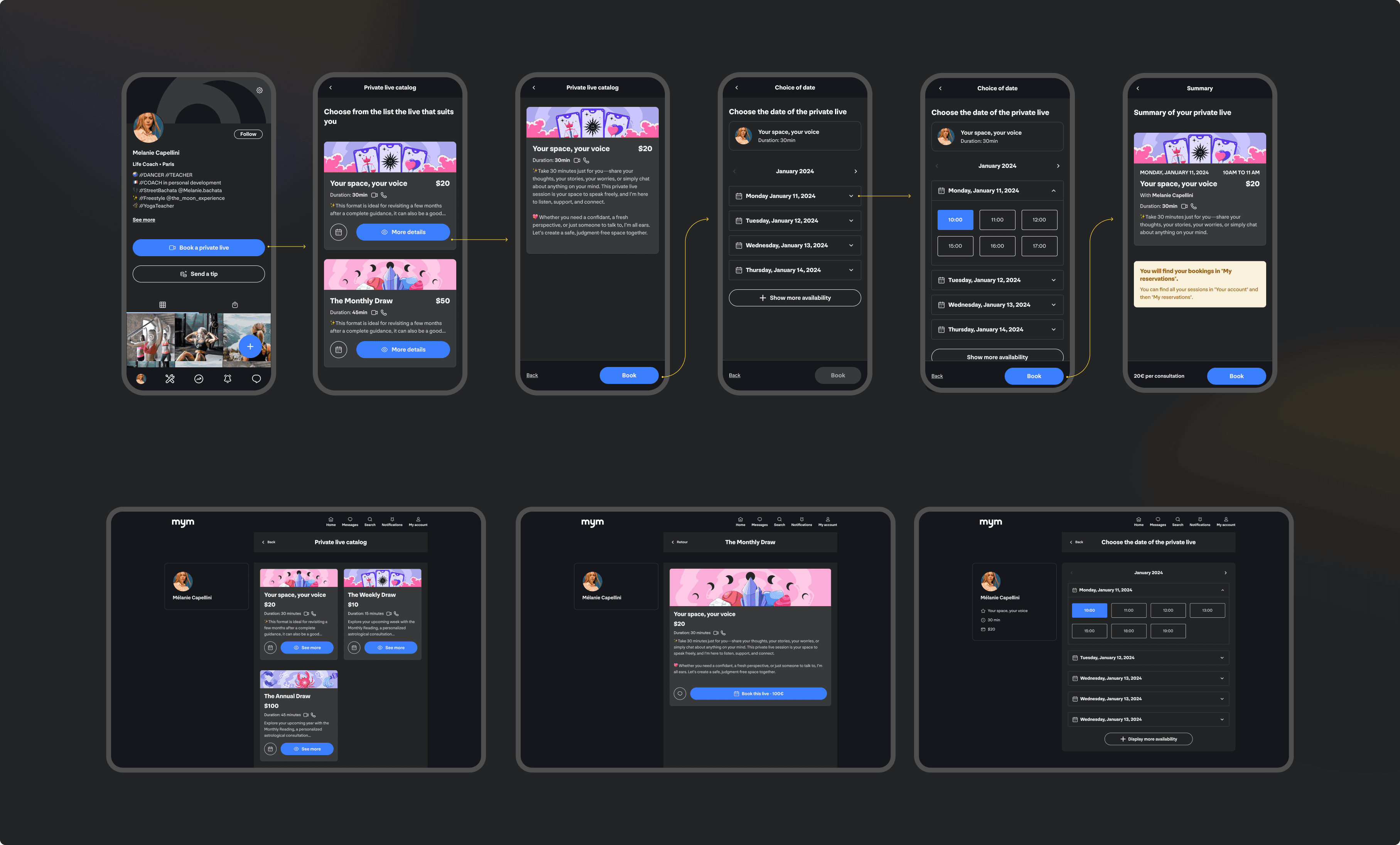 During my time at MYM, we maintained frequent communication with our users—both creators and subscribers—through surveys, interviews, workshops, and more. One of the most common pieces of user feedback, accounting for roughly 20% of all responses, was the desire for a feature to host and book private live sessions.