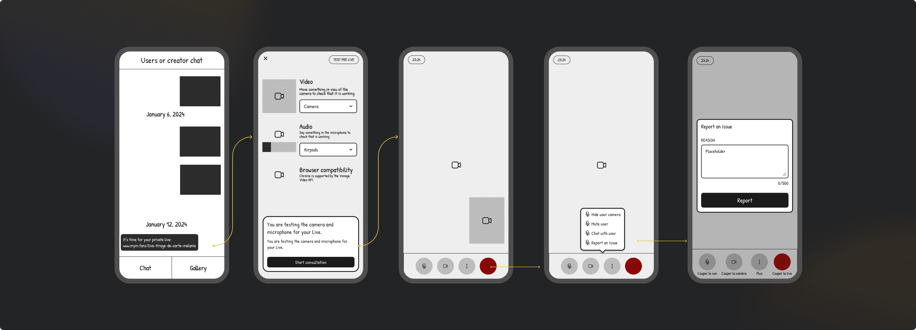 Through interviews and a dedicated workshop with content creators, we identified the key features needed for the launch of private live sessions. All the creators emphasized three main priorities: effective live moderation, the ability for both participants and themselves to actively use the camera and microphone, and optimized management of no-shows.