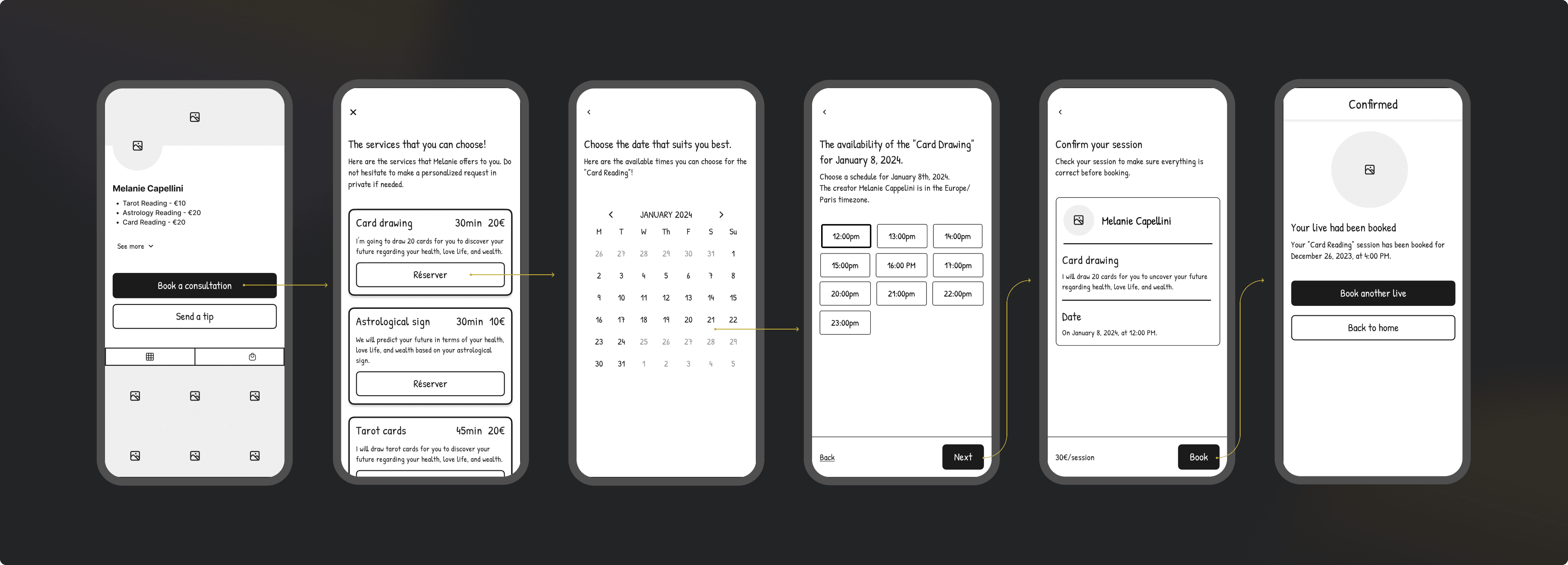 Thanks to the interviews with the creators, we understood their desire to avoid negotiating with users on the type, price, or duration of live sessions. Thus, we created a catalog of live session options where users can choose based on these criteria.