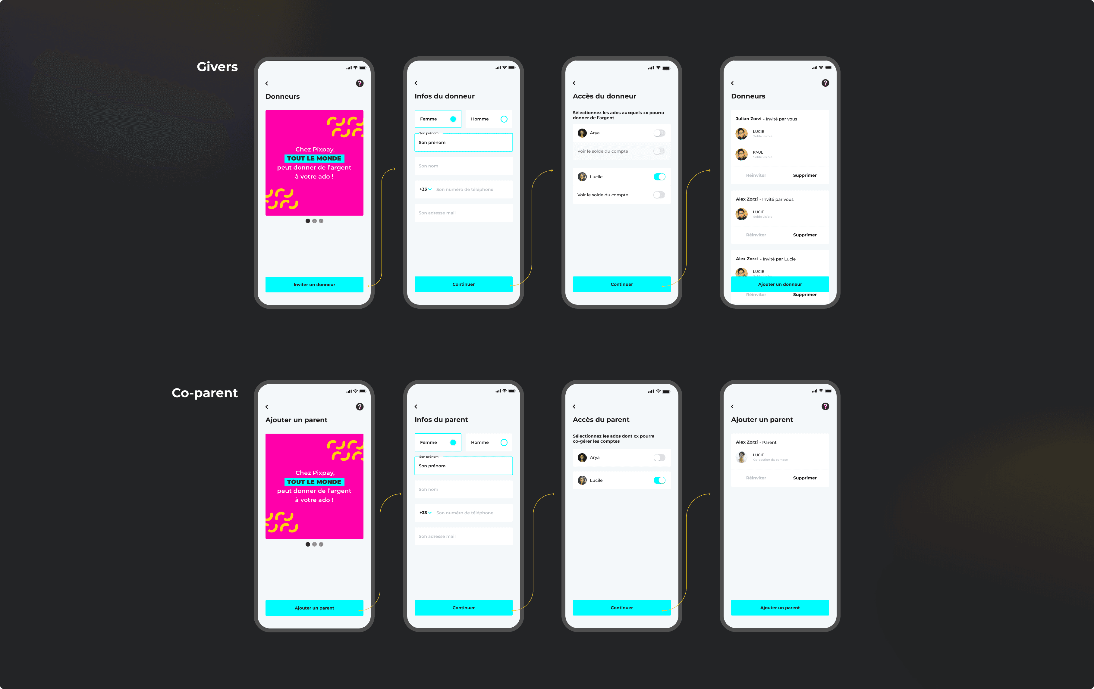 Pixpay is a French fintech startup specializing in teen banking. Pixpay provides teenagers with a bank card and an application that is co-managed by parents. For two years, I was also responsible for finding the best solutions to help parents manage their teenagers' accounts.